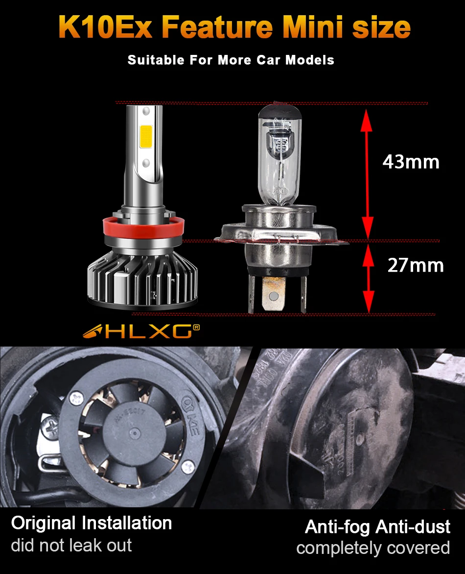 HLXG Mini H4 luces H7 светодиодный дальний Автомобильный Фонарь 12 В 10000LM H11 9005 HB3 9006 HB4 H8 4300K 6000K 8000K Аксессуары для ламп