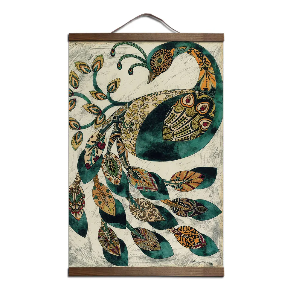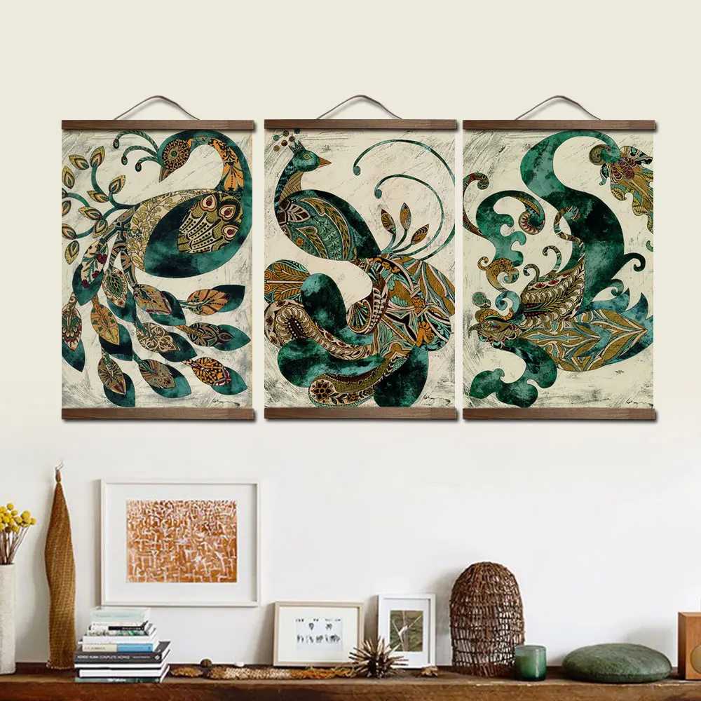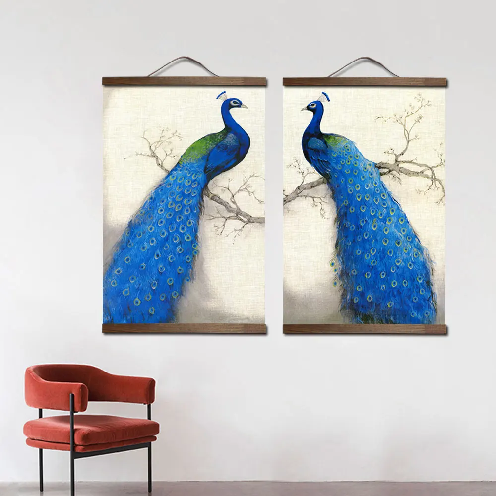 Китайский Стиль павлина, декоративная картина на холсте магазин Спальня для Гостиная Wall Art твердой древесины прокрутки Картины Декор