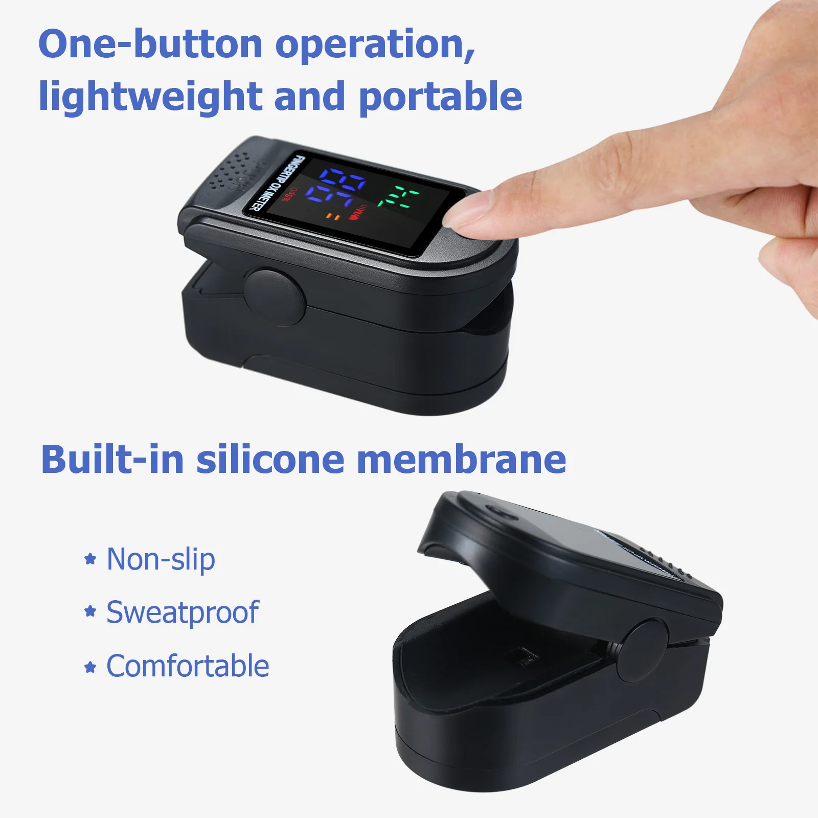 Особенности: Высокоточный инфракрасный датчик, стабильный и надежный, для безопасного использования, обеспечивает точное измерение, небольшие ошибки. Температура сигнализации может быть установлена и после превышения, это даст звуковой сигнал. По умолчанию температура сигнализации составляет 38 ℃. Большое ЖК-дисплей цифровой дисплей с 3-цветной высокой яркости подсветки может четко показывать температуру и соотношение цена/качество. Вы можете выбрать режим температуры поверхности объекта и режим измерения температуры тела в соответствии с вашими потребностями. Направьте на лоб, без контакта, нажмите кнопку измерения, и ЖК-дисплей покажет измеренную в настоящее время температуру. Автоматическое хранение 32 наборов данных измерений, вы можете просмотреть данные предыдущих измерений для легкого анализа и сравнения. Компактный дизайн, легкий и портативный, удобная ручка, легко носить с собой, удобно использовать. Подходит для детей, детей и взрослых и может широко использоваться в школе, офисе, дома и т. д. Примечание: аккумуляторы в комплект не входят. Спецификация: Метод измерения: Бесконтактный Расстояние измерения: 3-5 см Единица измерения: Цельсия (℃), Фаренгейт (℉) Диапазон измерения: 32 ℃-42,9 ℃ (89,6 ℉-109,2 ℃) Макс. Допустимая погрешность: ± 0,3 ℃/0,54 ℉ в пределах радиуса действия 35 ℃-42 ℃ Разрешение дисплея: 0,1 ℃/0,1 ℉ Рабочая среда: 16 ℃-35 ℃ (60,8 ℉-95 ℉), Humidity≤ 85% Среда хранения при транспортировке: -20 ℃-50 ℃ (-4 131-131 ℉), влажность ≤ 90% Мощность: 3 В постоянного тока (2 щелочных аккумулятора AAA не входят в комплект) Подсветка: подсветка подсветки Автоматическое отключение: 30s Материал: АБС-пластик + Поликарбонат Товар Размеры: 15,0*8,5*4,3 см/5,90*3,34 * 1.69in Вес изделия: 96 г/3,38 унций Посылка: 1 * термометр 1 * Руководство пользователя (на английском языке) Особенности: Его можно использовать для быстрого и точного измерения SpO2 (насыщение крови кислородом) и PR (пульс). Прижмите палец оксиметром (поверхность ногтя вверх при измерении), нажмите кнопку, и вы можете просмотреть результат в 5s. СВЕТОДИОДНЫЙ цветной дисплей, SpO2/PR может быть четко отображен, 2 направления можно отрегулировать для удобного чтения. Автоматическое отключение около 8 секунд, энергосбережение и экологичность. Легкий и портативный оксиметр с шнурком, подходит для дома или путешествий. Характеристики: Материал: пластик Измерение уровня кислорода в крови диапазон: 0-100% Измерение уровня кислорода в крови точность: 70-100%, ± 2%, меньше, чем 70% Диапазон измерения пульса: 30-250BPM (разрешение 1BPM) Батарея: 2*1,5 V AAA Батарея (не входит в комплект) Цвет: черный Товар Размеры: 5,8*3,2*3,0 см/2,28*1,26 * 1.18in Вес изделия: 24 г/0,84 унций Посылка: 1 * Пульсоксиметр пальцевого наконечника 1 * ремешок 1 * Руководство пользователя (на английском языке)