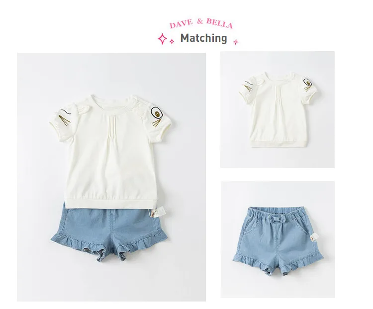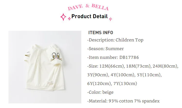 DB17786 нижнее белье в стиле бренда dave bellaлетнее платье для маленьких девочек; Симпатичная хлопковая Футболка с принтом из мультфильма; Детская одежда; Детская верхняя одежда для девочек; Модные футболки с принтом