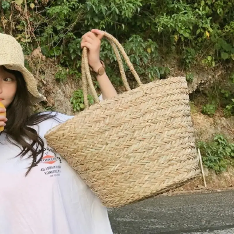Плетеная Женская сумочка, Повседневная плетеная вместительная сумка на плечо, летняя пляжная Соломенная женская сумка, большие корзины, 2021