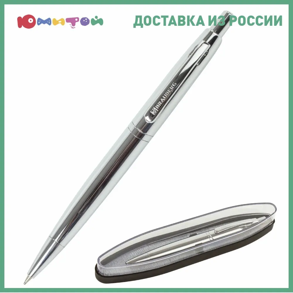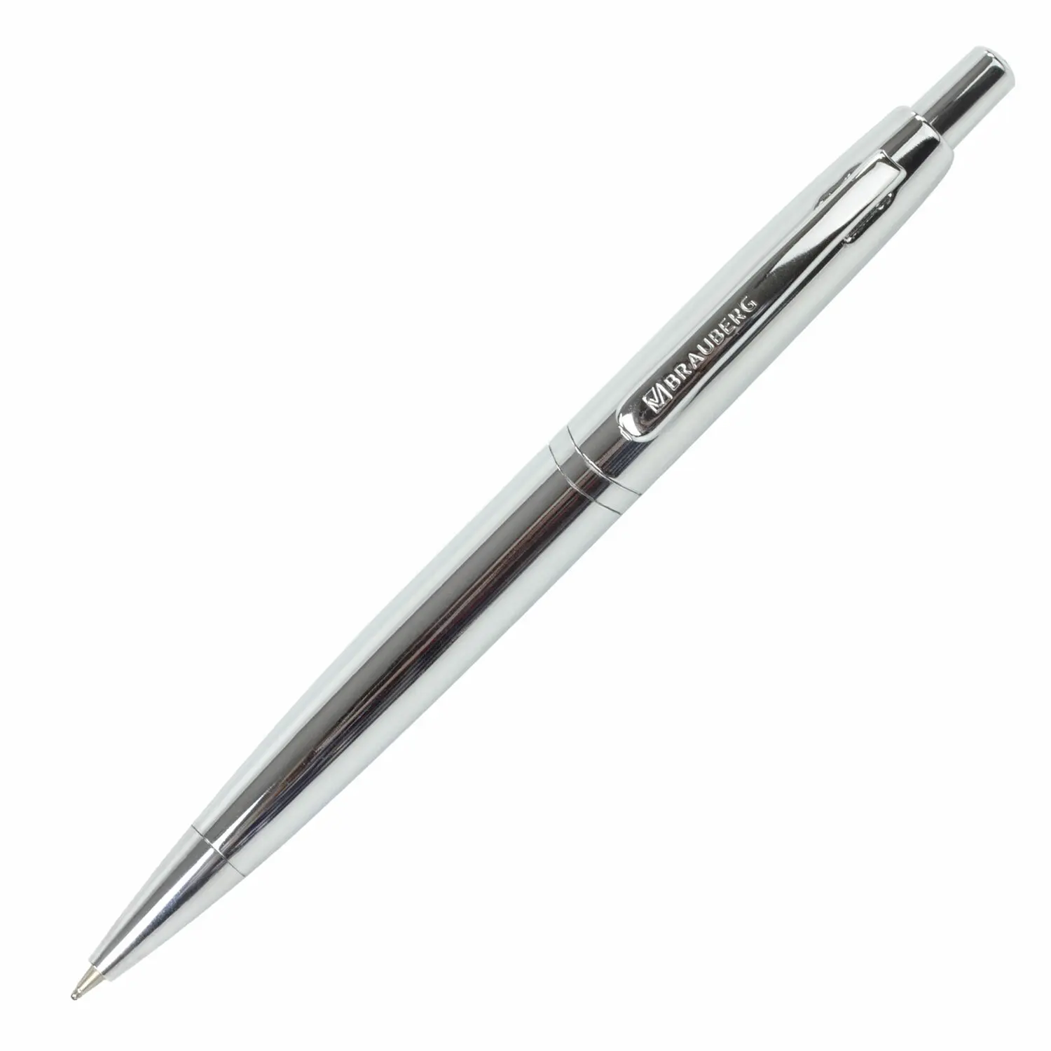 Ручка бизнес-класса шариковая Brauberg Opera, синяя, корпус серебристый с хромированными деталями, линия письма 0,5 мм (143486)