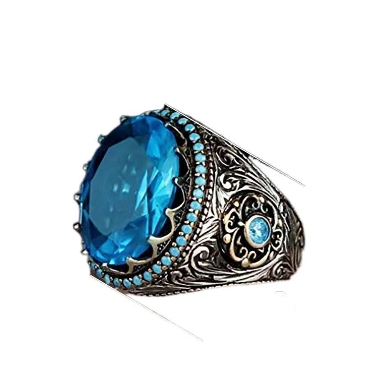 Оптовая продажа яйцеобразная в форме синего цвета с украшением в виде кристаллов резной узор сплав женское кольцо для женщин вечерние, ювелирное изделие для помолвки ручной аксессуары Размеры 7-12