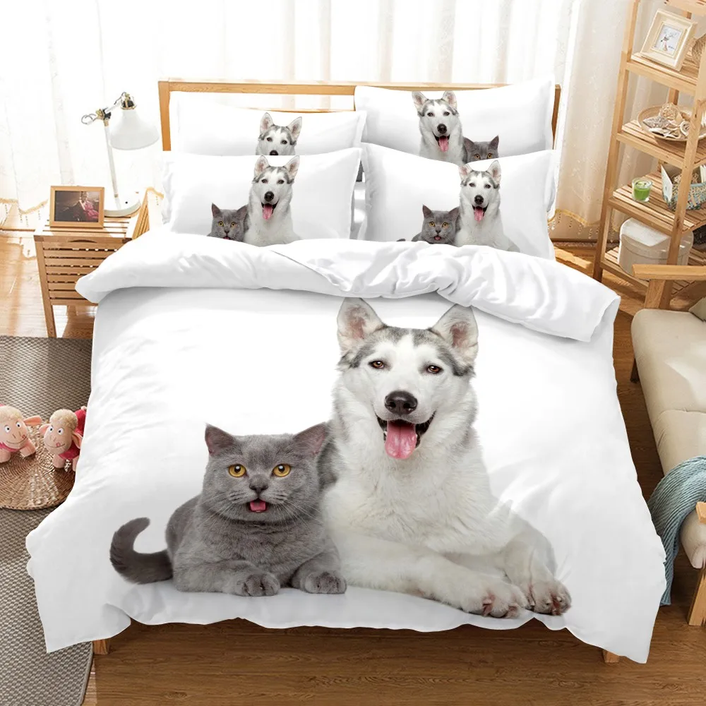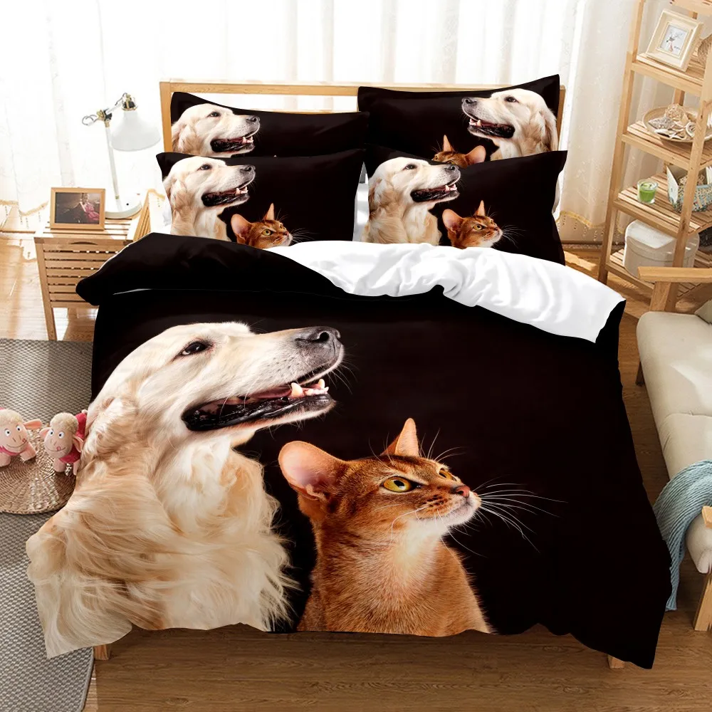 Комплект постельного белья с животными, милые кошки, собаки, забавное одеяло, пододеяльник, двойной одноразмерный постельный комплект для детей, домашний текстиль