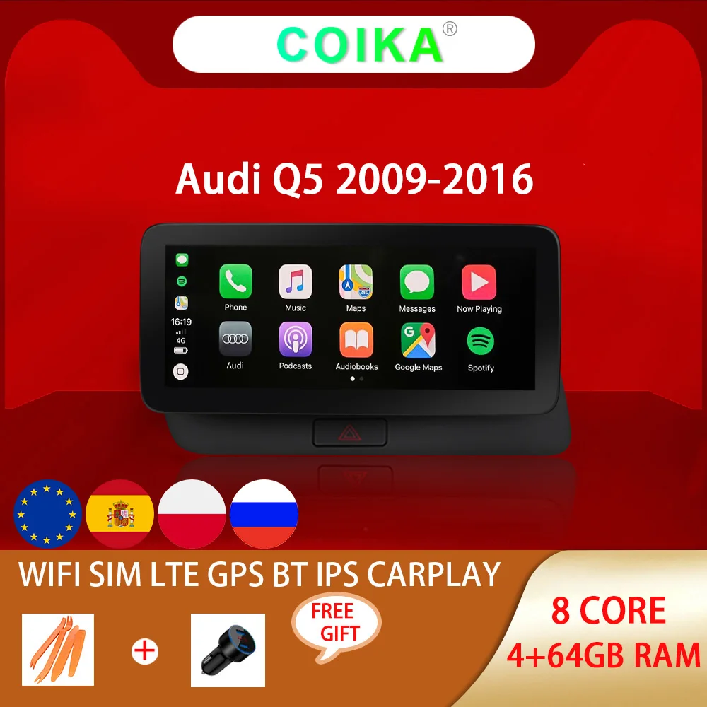 Мультимедийная система COIKA, Android 2009, 4G, Wi-Fi, для Audi Q5 2016-, IPS, сенсорный экран, Google BT, 8 ядер, GPS, 4 + 64 ГБ