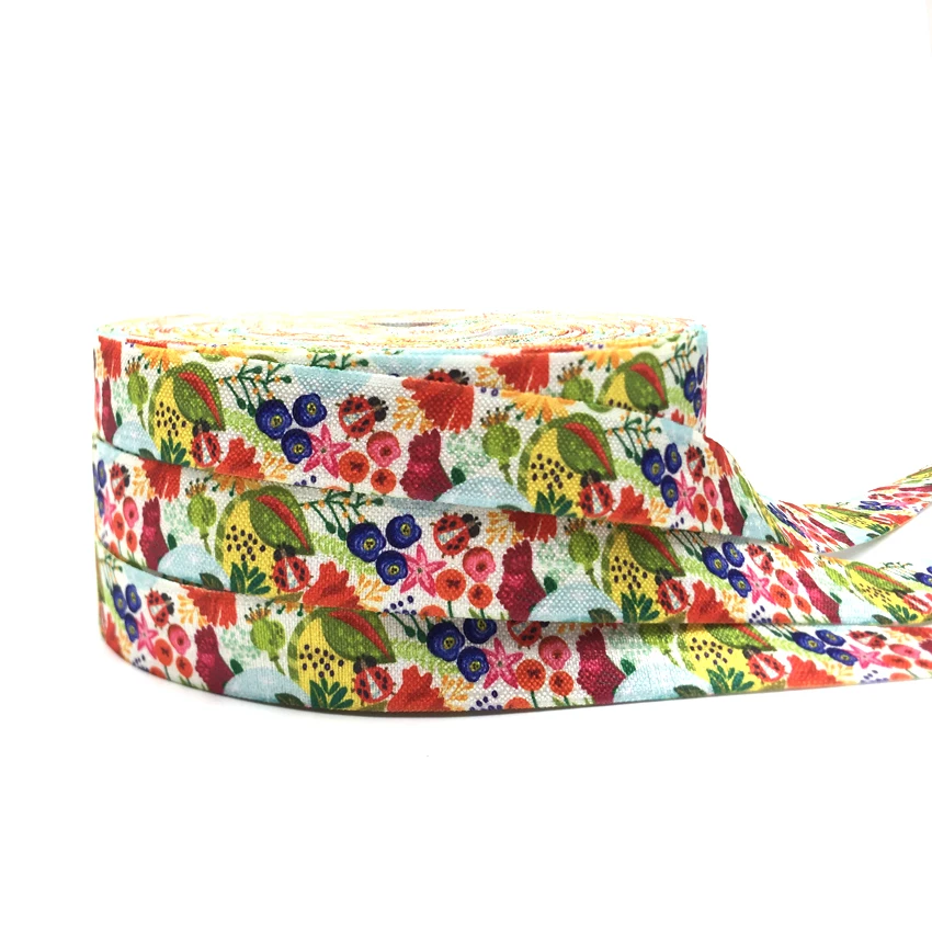 10 лет 15 мм милый цветок Маргаритка печати складки над эластичным FOE ленты тесьма для головные уборы Швейные аксессуары для волос