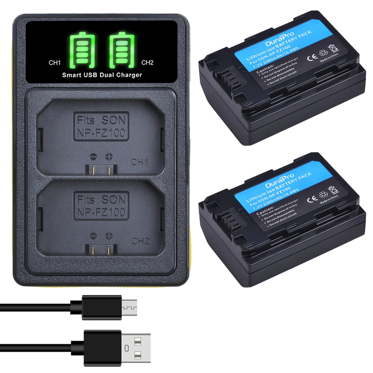 2 шт. 2280 мАч NP-FZ100 батарея + светодиодное зарядное устройство с портом типа C для Sony NP-FZ100 BC-QZ1 Alpha 9,A7RIII,ILCE-7RM3,A9,A9R,9s камера