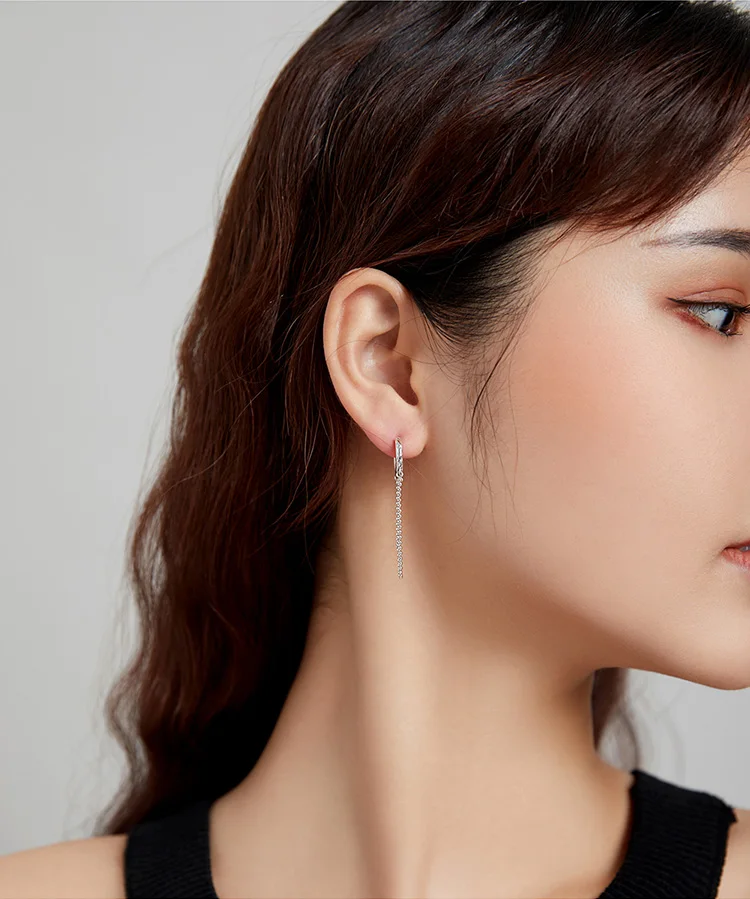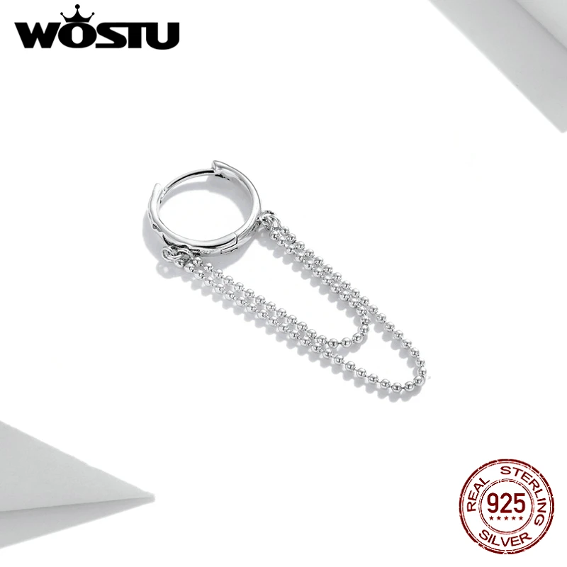 Женские серьги из стерлингового серебра 925 пробы Wostu, простые Жемчужные Цепочки, пряжки для ушей, ювелирные украшения на годовщину, подарок FIE1121