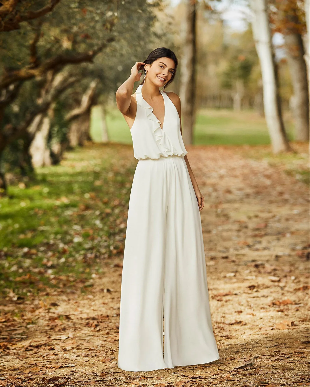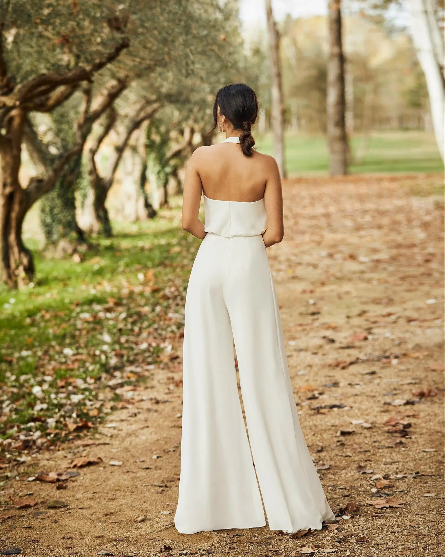 В богемном стиле кантри с лямкой на шее свадебное платье комбинезон 2021 сексуальная с открытой спиной, из шифона, Robes De Marie Бохо пляжное невесты платья с брюками Костюм