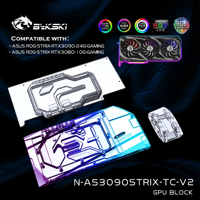 Bykski водный блок для ASUS ROG STRIX RTX3090 RTX3080 + фоновая вод...