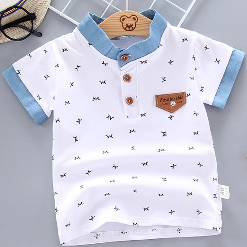 Летняя рубашка-поло одежда с короткими рукавами для маленьких мальч...