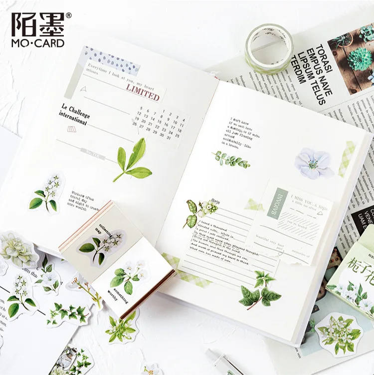 Новинка, 10 коробок, декоративный клей в виде листьев гардении, наклейка с печатью для МО-карты, скрапбукинг, дневник, Стик, этикетка, дневник, милые канцелярские принадлежности
