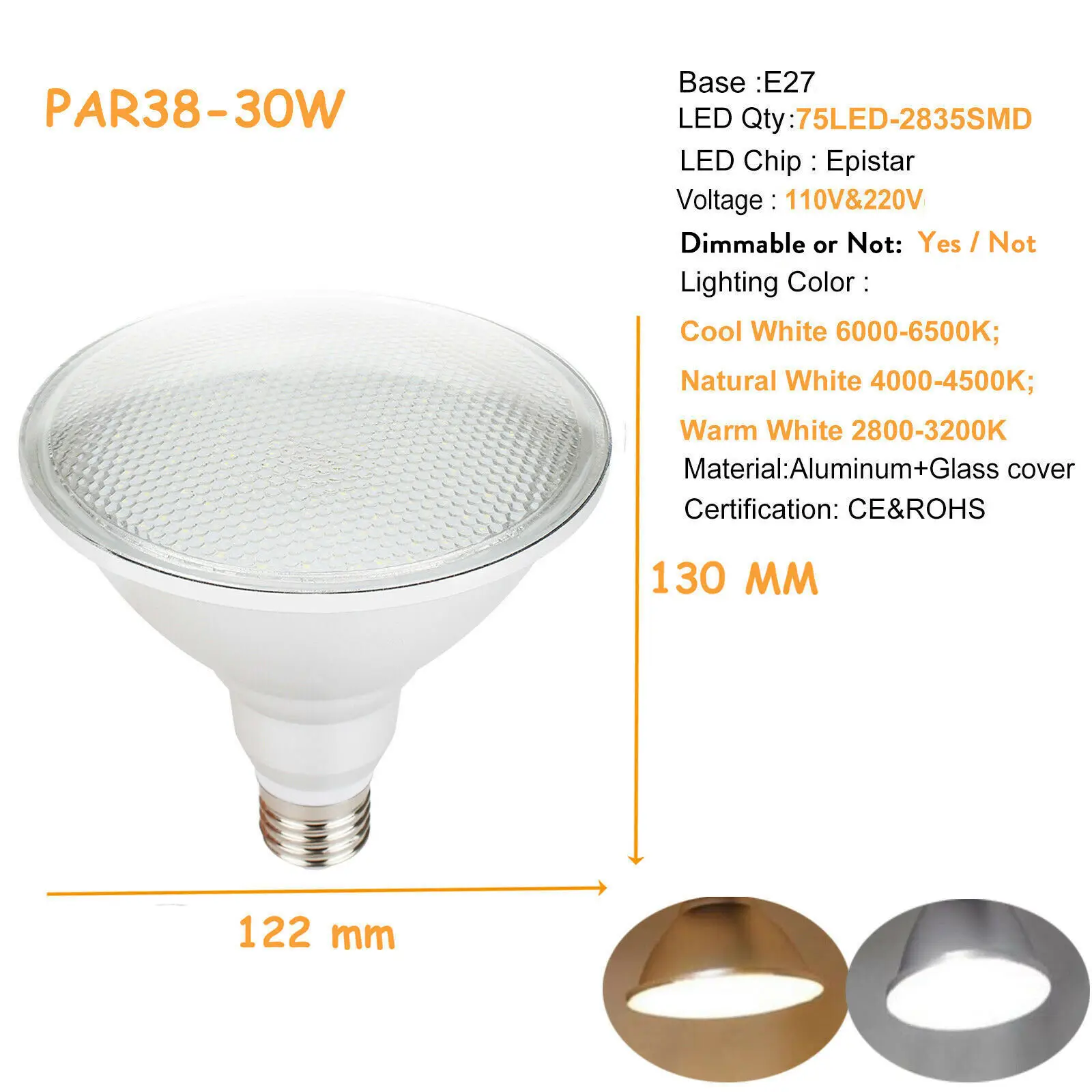 30 Вт COB светодиодный светильник PAR20 PAR30 PAR38 энергосберегающая лампа AC 85-265 в E27 светодиодный точечные потолочные светильники