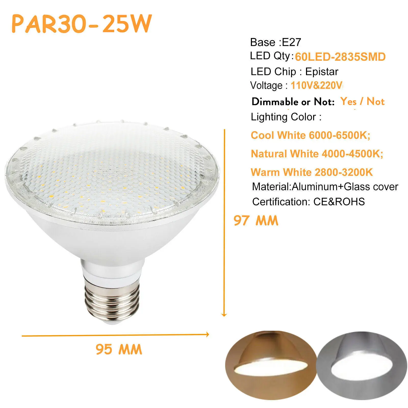 Светодиодная лампа E27 с регулируемой яркостью PAR20 PAR30 PAR38 COB, светодиодные светильники 15 Вт 25 Вт 30 Вт, энергосберегающая лампа 220 В