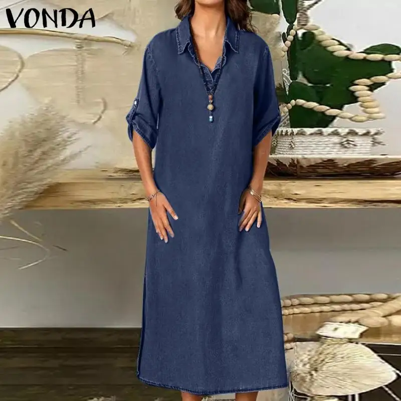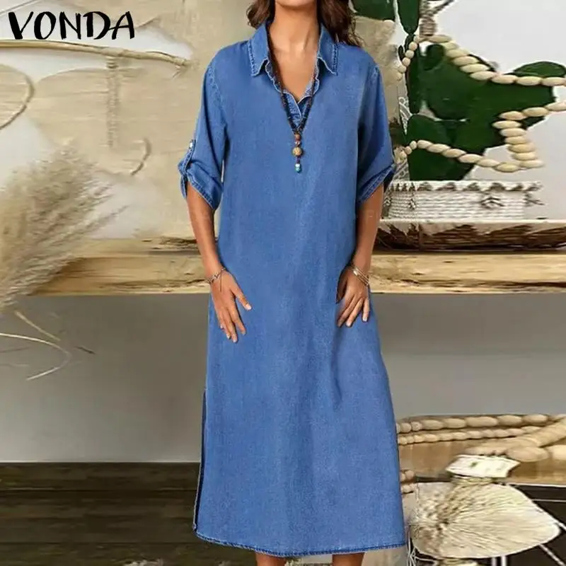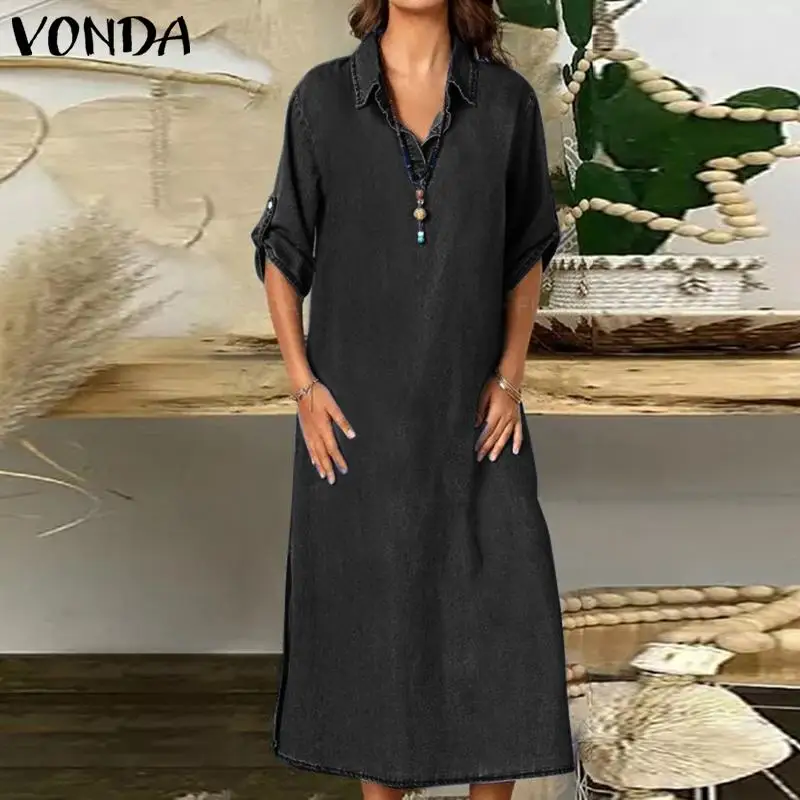 2022 осеннее джинсовое длинное платье VONDA, женские модные повседн...