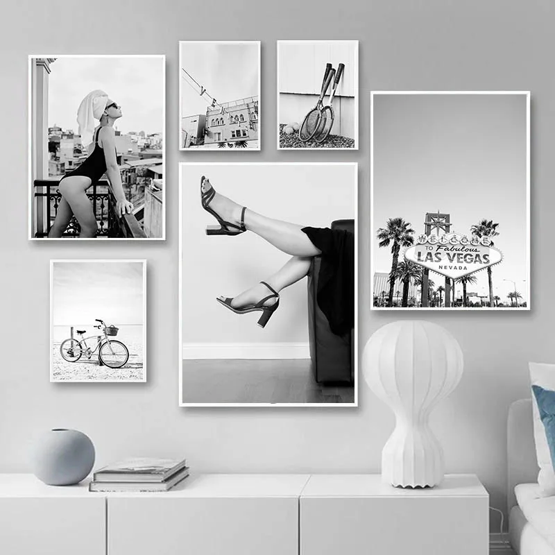 Черно-белый модный плакат пейзаж Нью-Йорка холст настенная Печать Сексуальная Женская художественная живопись фотография современный Декор для дома картина