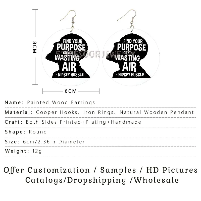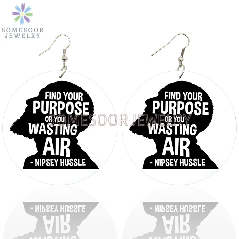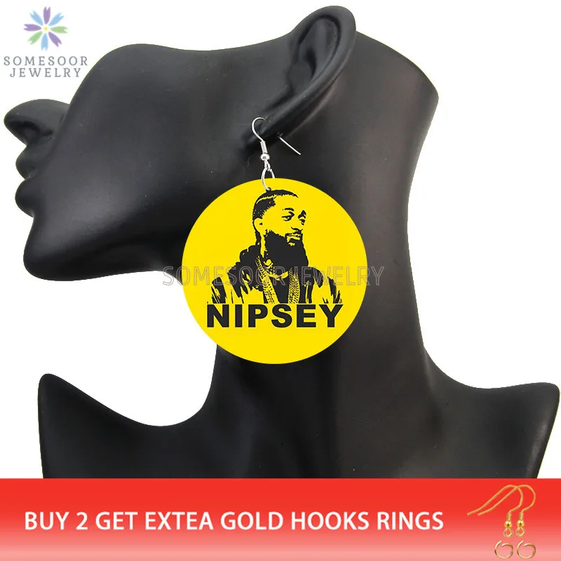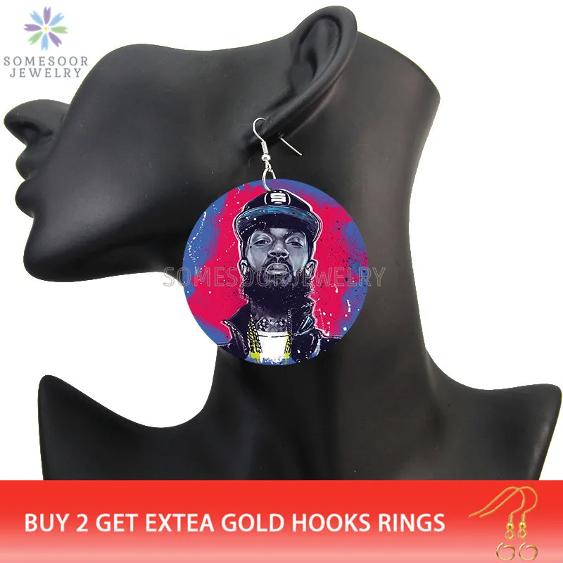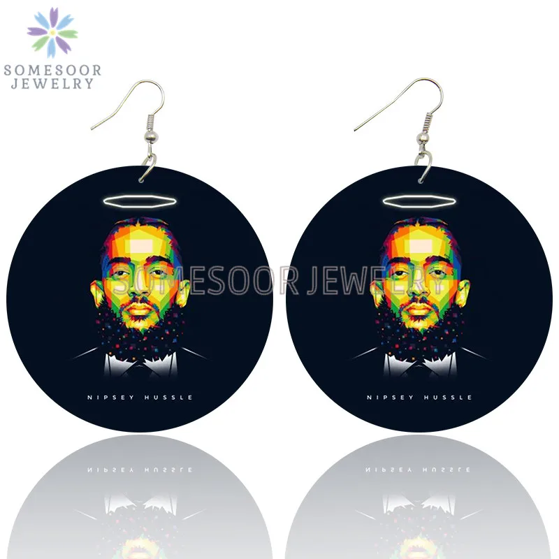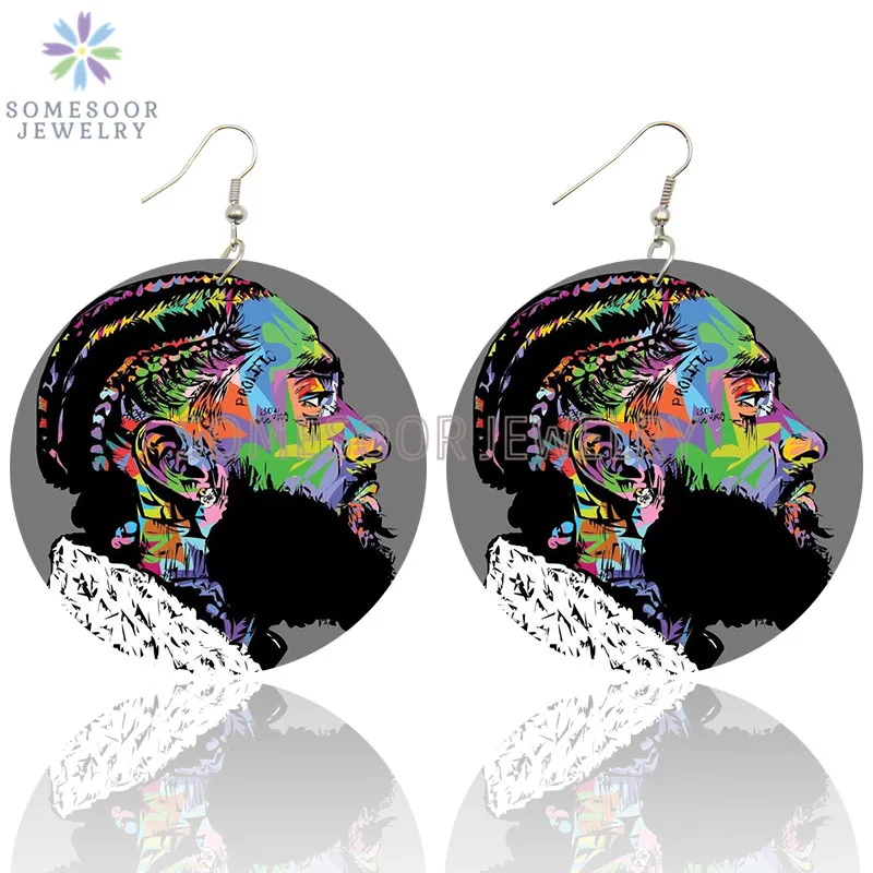 SOMESOOR Miss Nipsey Hussle деревянные серьги в виде черного героя, американские известные раперские печатные петли, Висячие ювелирные изделия для женщин, подарки