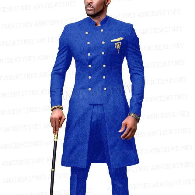 Мужской Жаккардовый костюм, длинный двубортный пиджак с воротником-стойкой, брюки для свадьбы, 2021