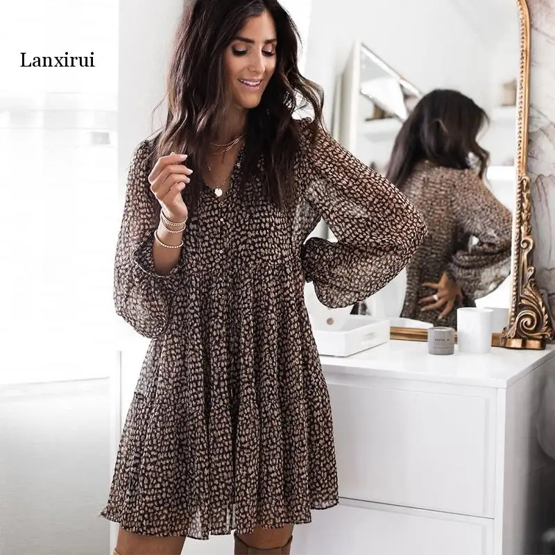 Женское мини-платье с леопардовым принтом, свободное повседневное Т...