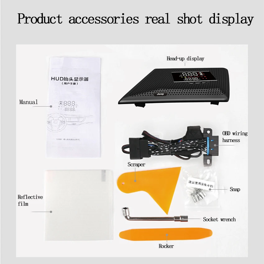 ВведениеСпасибо за покупку нашего HUD.Этот HUD предназначен для отражения компьютерной информации вашего автомобиля на лобовом стекле,Обеспечивает более безопасное вождение изо дня в день, а также, что более важно, на высоких скоростях и во время ночного вождения.Поскольку это устраняет необходимость для водителя окунуть голову, чтобы просмотреть приборную группу.Корректная установка этого устройства позволит вам более эффективно контролировать скорость,Это полезно как для начинающих водителей, так и для опытных водителей во избежание нарушения скорости.Наш HUD использует самые современные технологии как в аппаратном, так и в программном обеспеченииА также эстетический дизайн, обладающий уникальной и элегантной формой в своей эстетической финальной сборке.Основные характеристики HUD:1. Подключение Plug and Play к любому автомобилю с поддержкой OBDII или EUOBD;2. 2D визуальный эффект3. Экран 5,5 дюйма4. Многоцветный дизайн облегчает чтение экрана, выделяет важные детали для быстрого просмотра;5. Использование нанотехнологий для устранения нежелательных отражений, облегчающих Чтение информации;6. Возможность отображения огромного диапазона статистики автомобиля, включая: скорость, скорость вращения двигателя, температуру воды, напряжение аккумулятора, мгновенный расход топлива, средний расход топлива, местное время, одиночное время вождения, измерение пробега, напоминание о переключении, напоминание о усталости водителя, сигнал низкого напряжения, сигнал высокой температуры, сигнал скорости, оповещение о неисправности двигателя, Устранение кода неисправности, возможность изменения единиц измерения, например, километров/миль7. Автоматическое включение и выключение автомобиля8. Автоматический и ручной режим регулировки яркости.