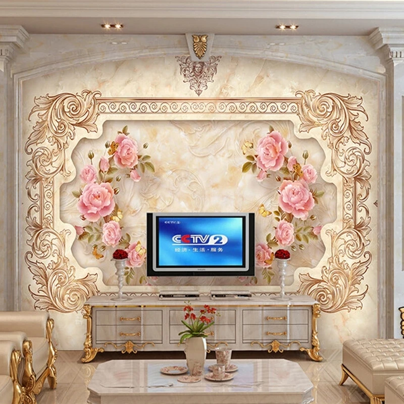 Настенная 3d-роспись на заказ, рельефное Европейское стерео украшение на стену с изображением роз, самоклеящиеся водонепроницаемые обои для гостиной, спальни