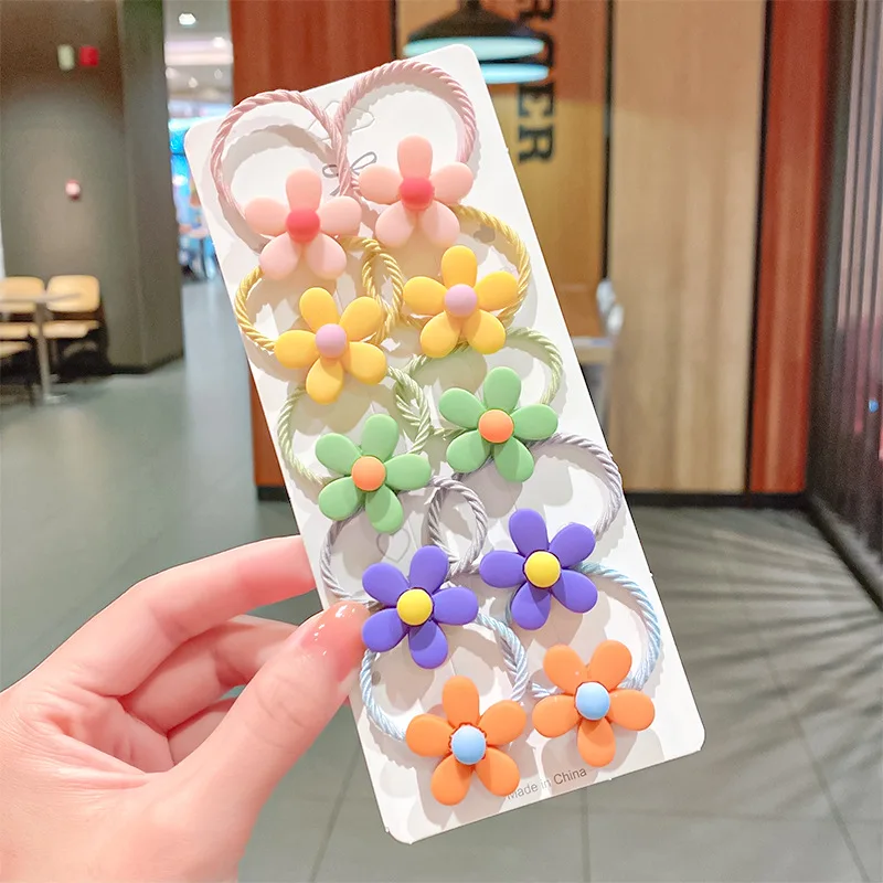 10 шт./компл., новинка, милые резинки для девочек с цветочным рисунком, маленькие резинки, повязка на голову с хвостом, модные аксессуары для волос