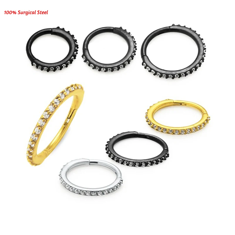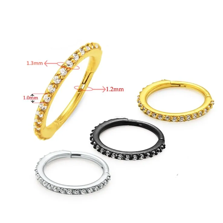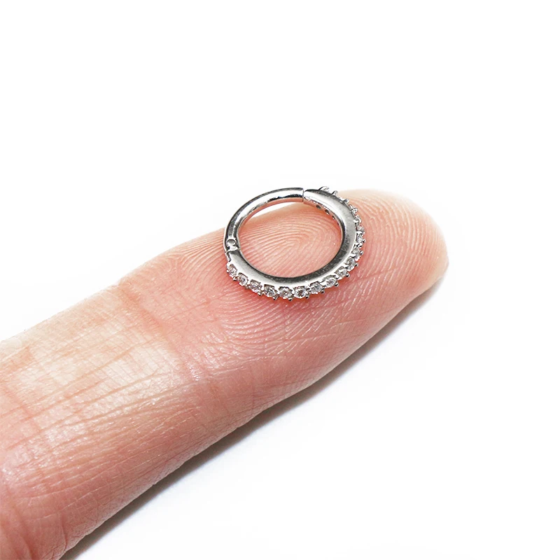 1 шт. G23 ТитанСталь с украшением в виде кристаллов нос кольцо для соска кликер из нержавеющей стали, козелка губ пирсинг сегментное перегородки Кликер
