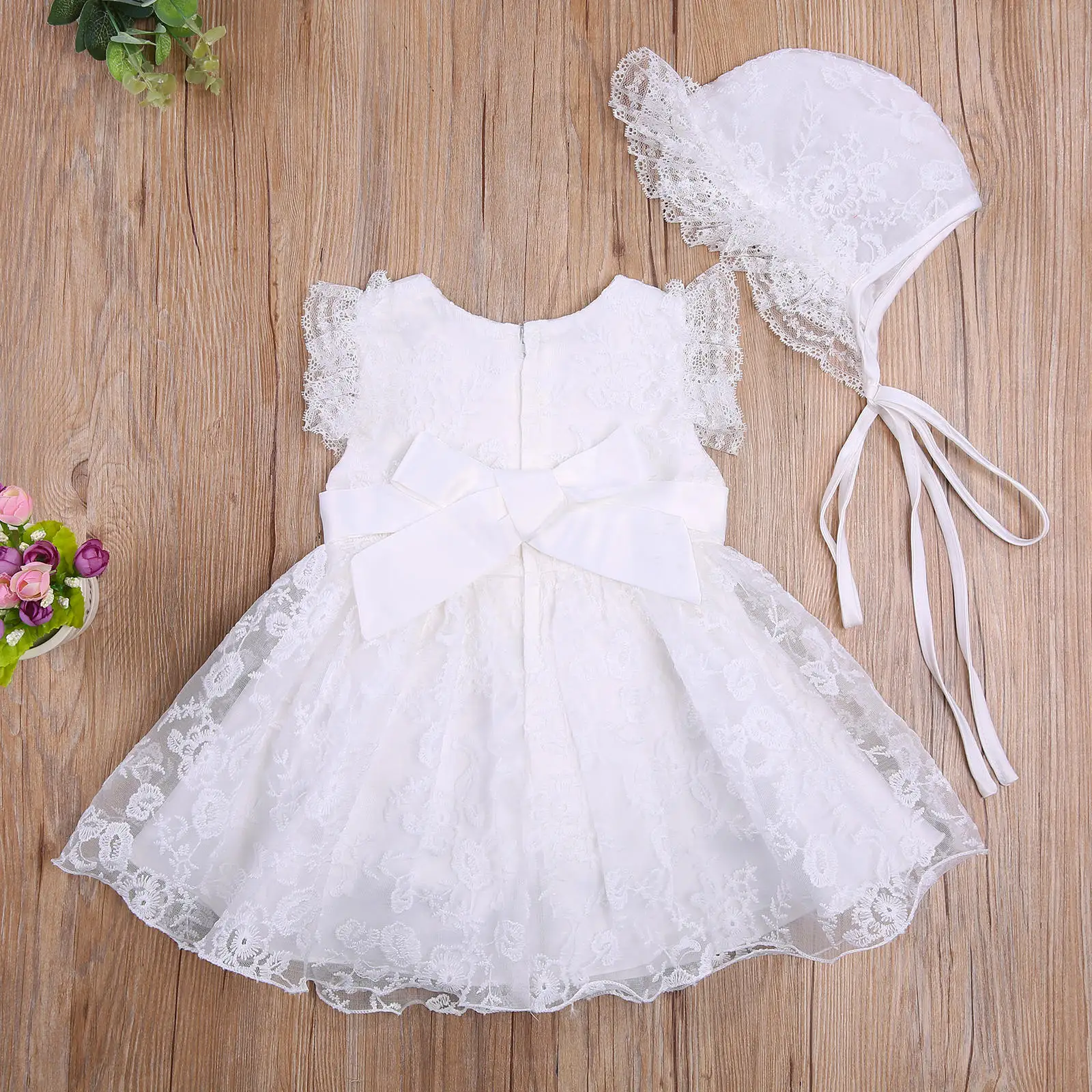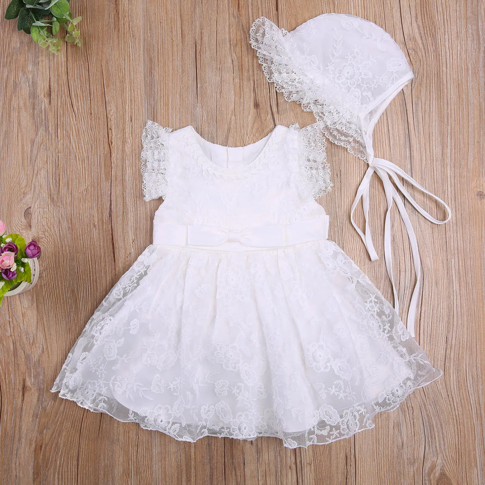 Детское платье с шапкой, кружевной Цветочный круглый вырез, цельнокроеное платье с рукавами-крылышками + шапочка