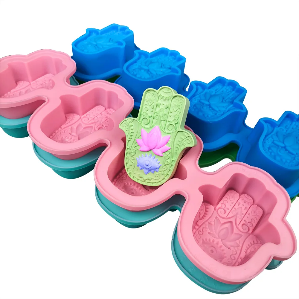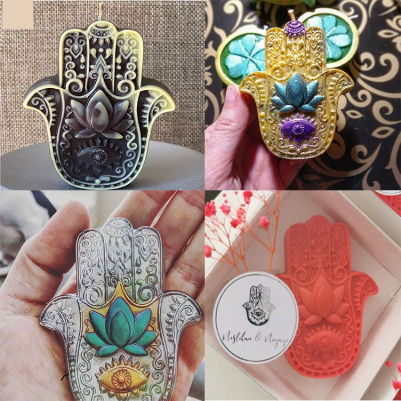 Силиконовая форма для мыла в виде свечи с 4 полостями, патент «Лотос в ладони», «Рука Фатимы», «сделай сам», талисман ручной работы, форма для поделок из смолы