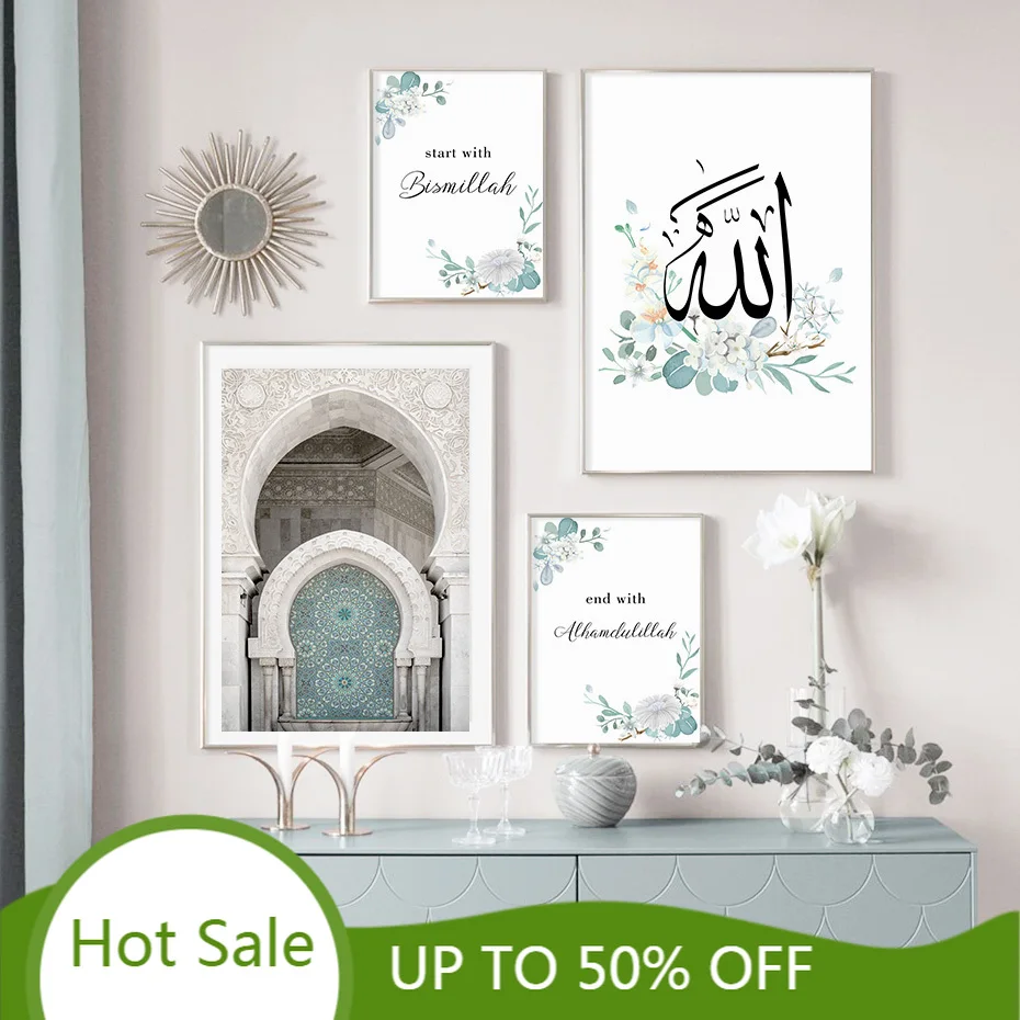 Хасан II мечеть Марокканская архитектура исламский зеленый цветок настенная Картина на холсте постеры печать картина для украшения дома