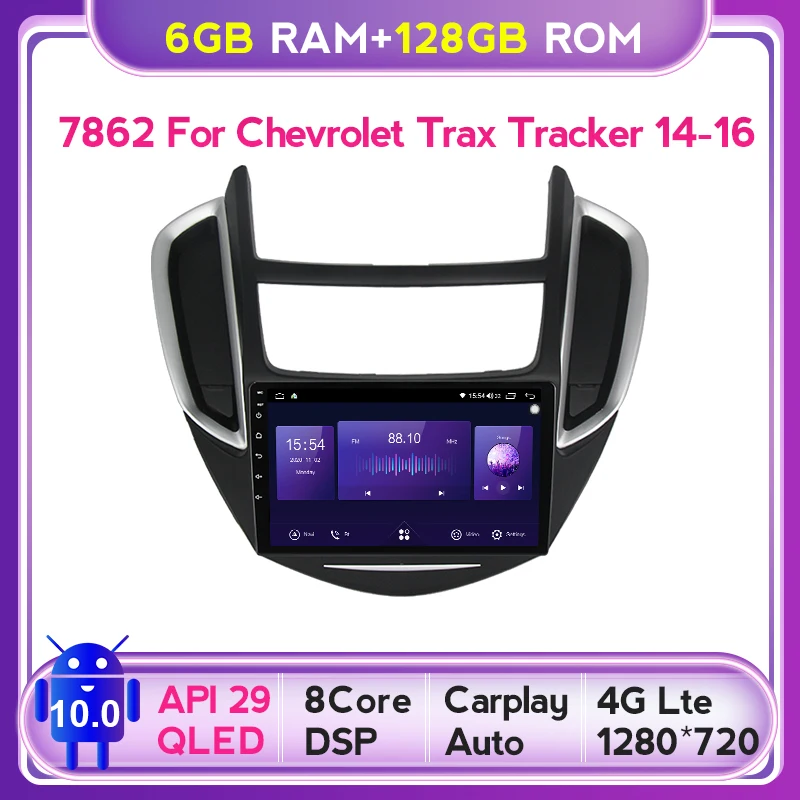Автомагнитола 2DIN, 6G + 128G QLED, Android 10 для 2014-2018 Horton, Chevrolet Trax, GPS-навигатор