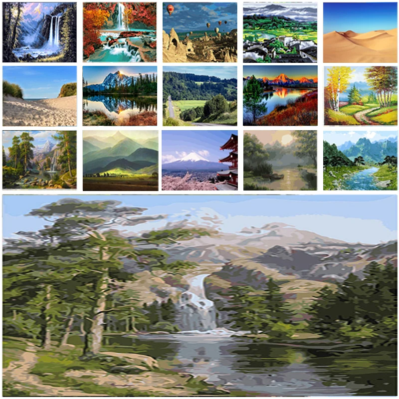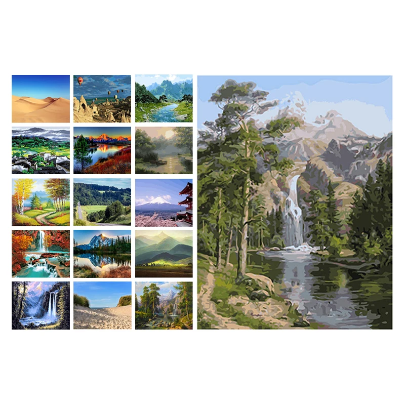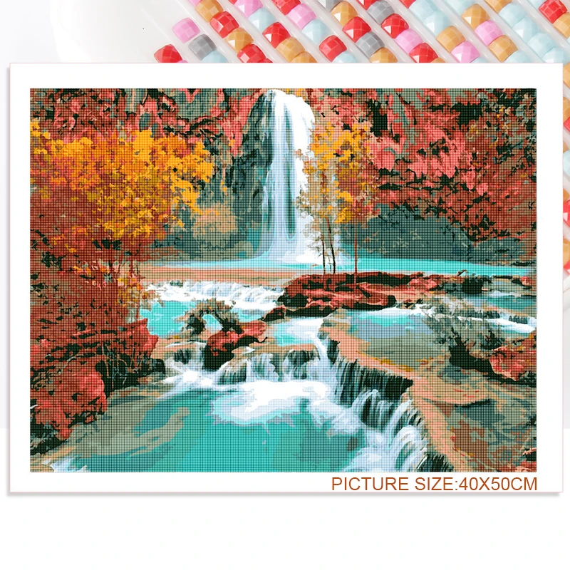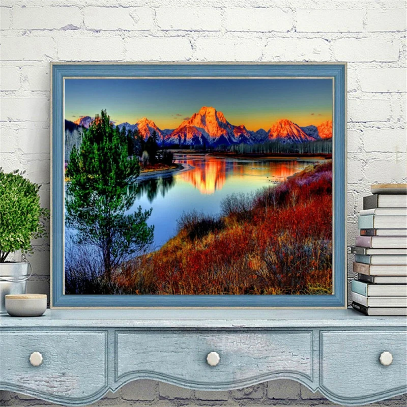 Алмазная вышивка, 5D природный пейзаж, алмазная живопись сделай сам, пейзаж, горы, водопад, река, полноразмернаякруглая картина на стену