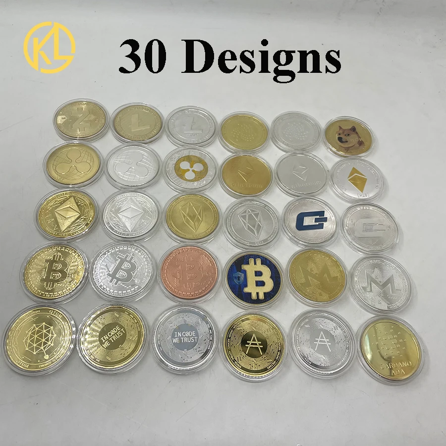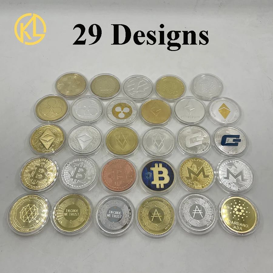 Монеты с золотым и серебряным покрытием, 20 шт.лот, Биткоинэфириумлиткоинтирепульсациякриплимонет целостиEOS, металлическая памятная монета