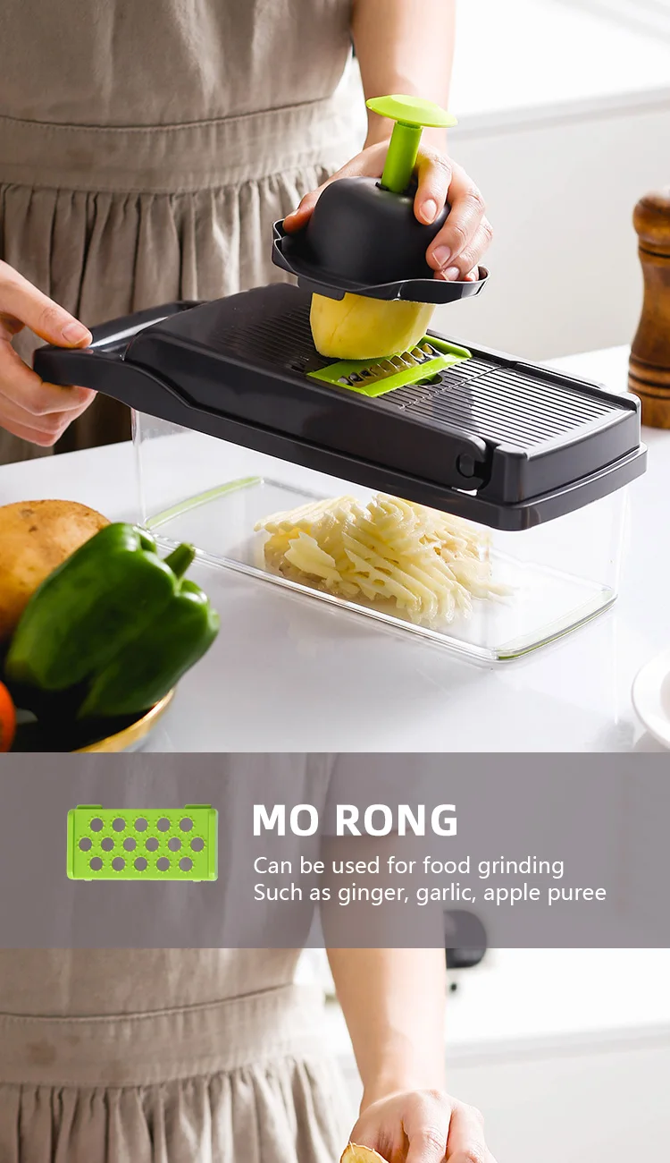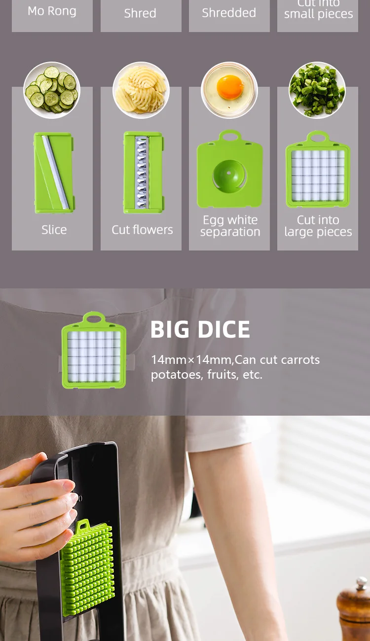 4. Многофункциональный измельчитель овощей: удовлетворяйте все ваши потребности, освободите свое кухонное пространство и наслаждайтесь разнообразными здоровыми блюдами. Идеально подходит для различных овощей, таких как огурцы, лук, картофель, помидоры, фрукты и т. д.