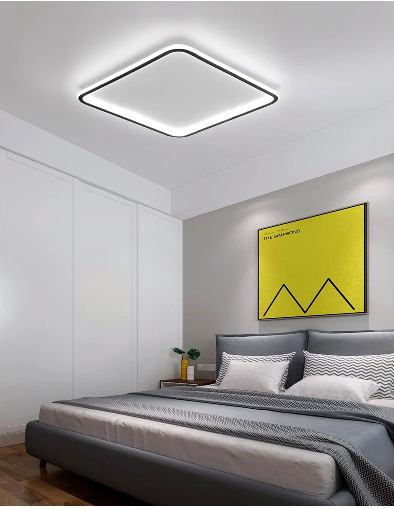Современный светодиодный ультратонкий потолочный светильник, квадратныеКруглые потолочные светильники с дистанционным управлением через приложение для гостиной, столовой, спальни, 90-260 В