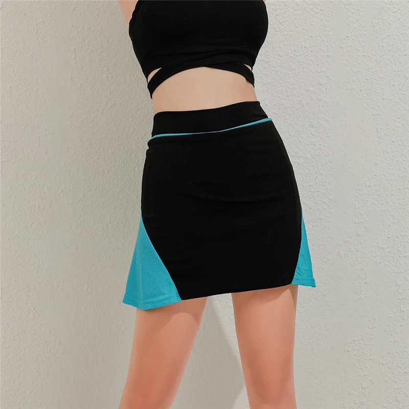 Женская Спортивная юбка для бега с высокой талией, Защитные шорты для йоги, двухслойные сетчатые шорты в стиле пэчворк для фитнеса, спортивная короткая юбка