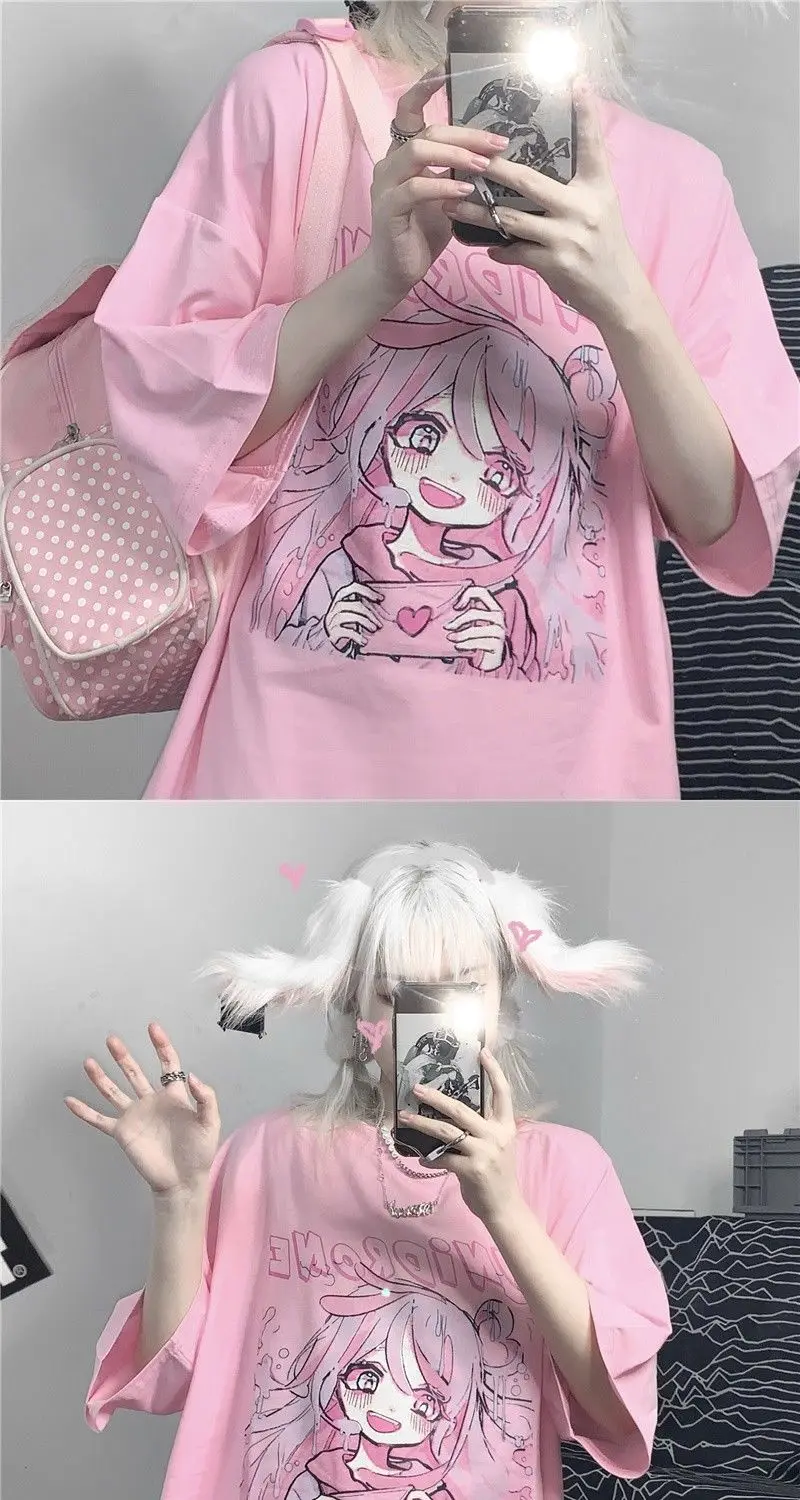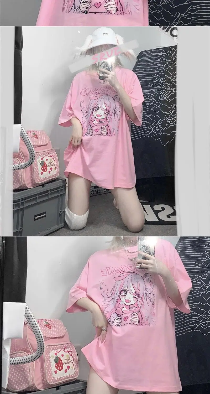 Футболка женская в стиле японского аниме, милая розовая одежда в ст...