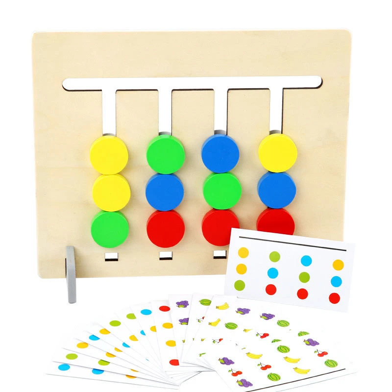 [Название продукта]:Деревянная игрушка Монтессори, четыре цвета/фрукты, двусторонняя игра, логическое мышление, Обучающие Детские развивающие игрушки для детей