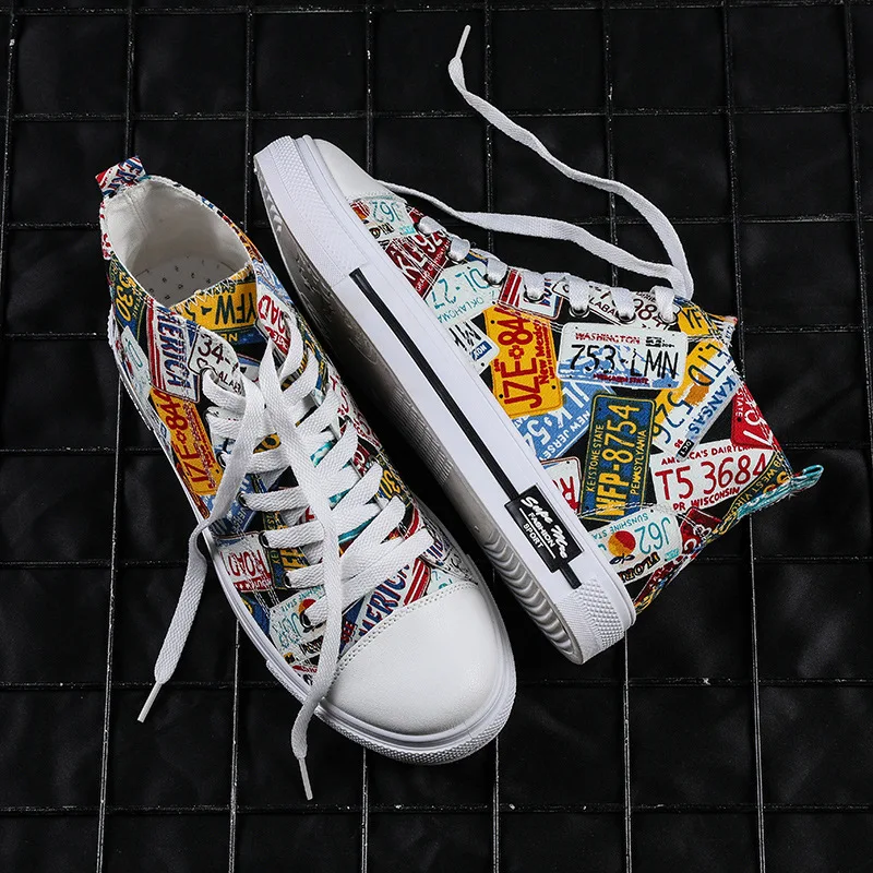 Кроссовки женские с мультяшным анимационным принтом, повседневная холщовая обувь, Вулканизированная подошва, черные белые, для подростков