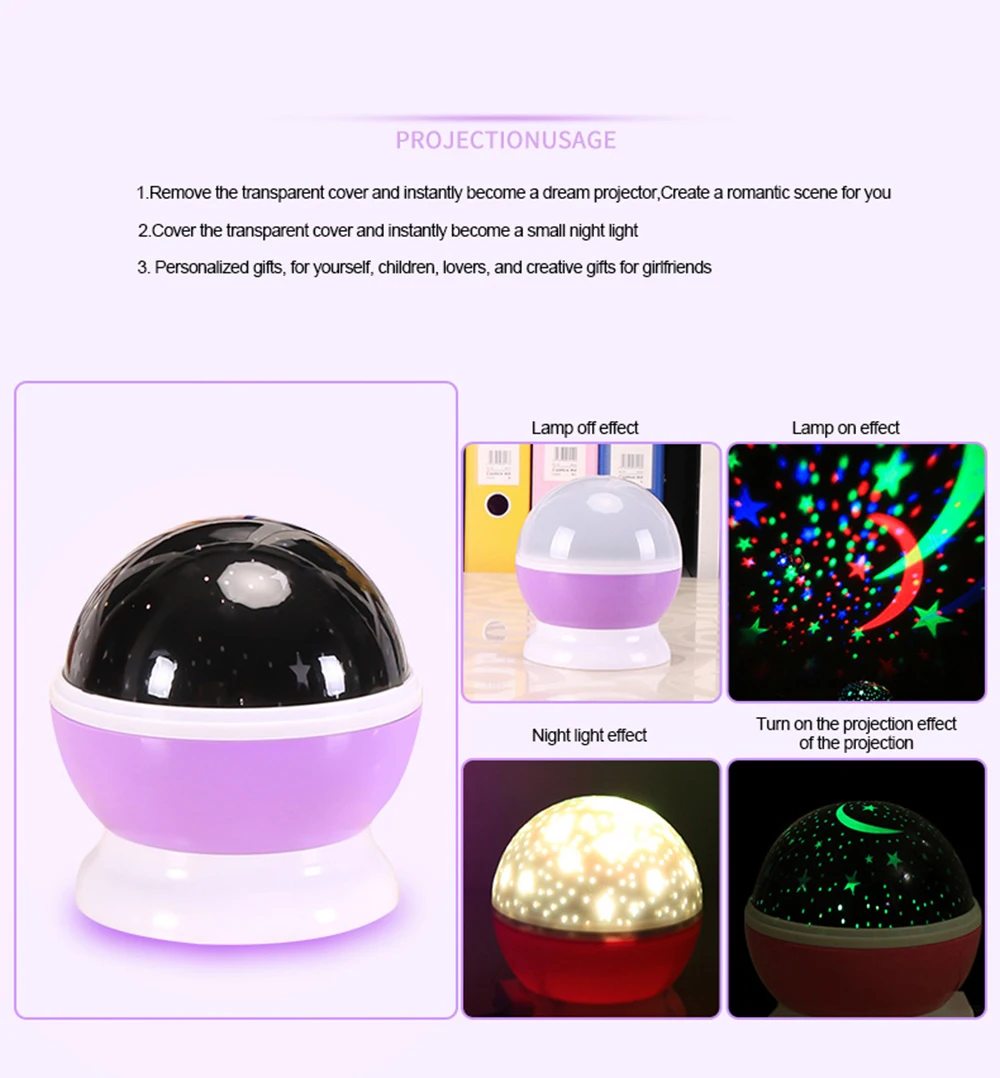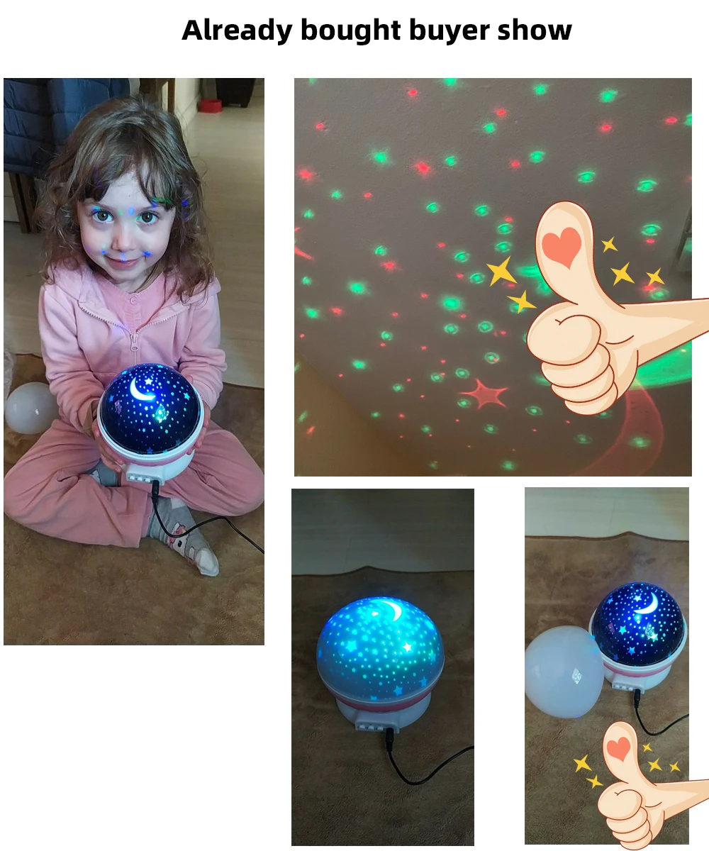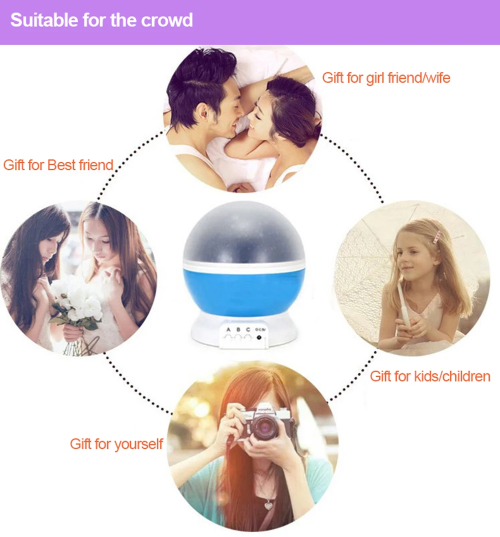 1. Идеально подходит для украшения свадьбы, дня рождения, вечеринок. Отлично подходит для романтической ночной лампы и декоративный светильник!2. Очень романтичная ночь, полный искреннего подарка3. Питание от 3 батарей AAA (не входят в комплект) или usb-кабеля (адаптер не входит в комплект).4. Это новая популярная Лампа для проектора cosmos Star, которая поможет вам вернуть вселенную домой, подарит вам кусочек неба, который меняет цвет, без необходимости трудно найти поле, вращая свое основание, там будет разное красочное пространство, найдите созвездие, которое вам принадлежит.
