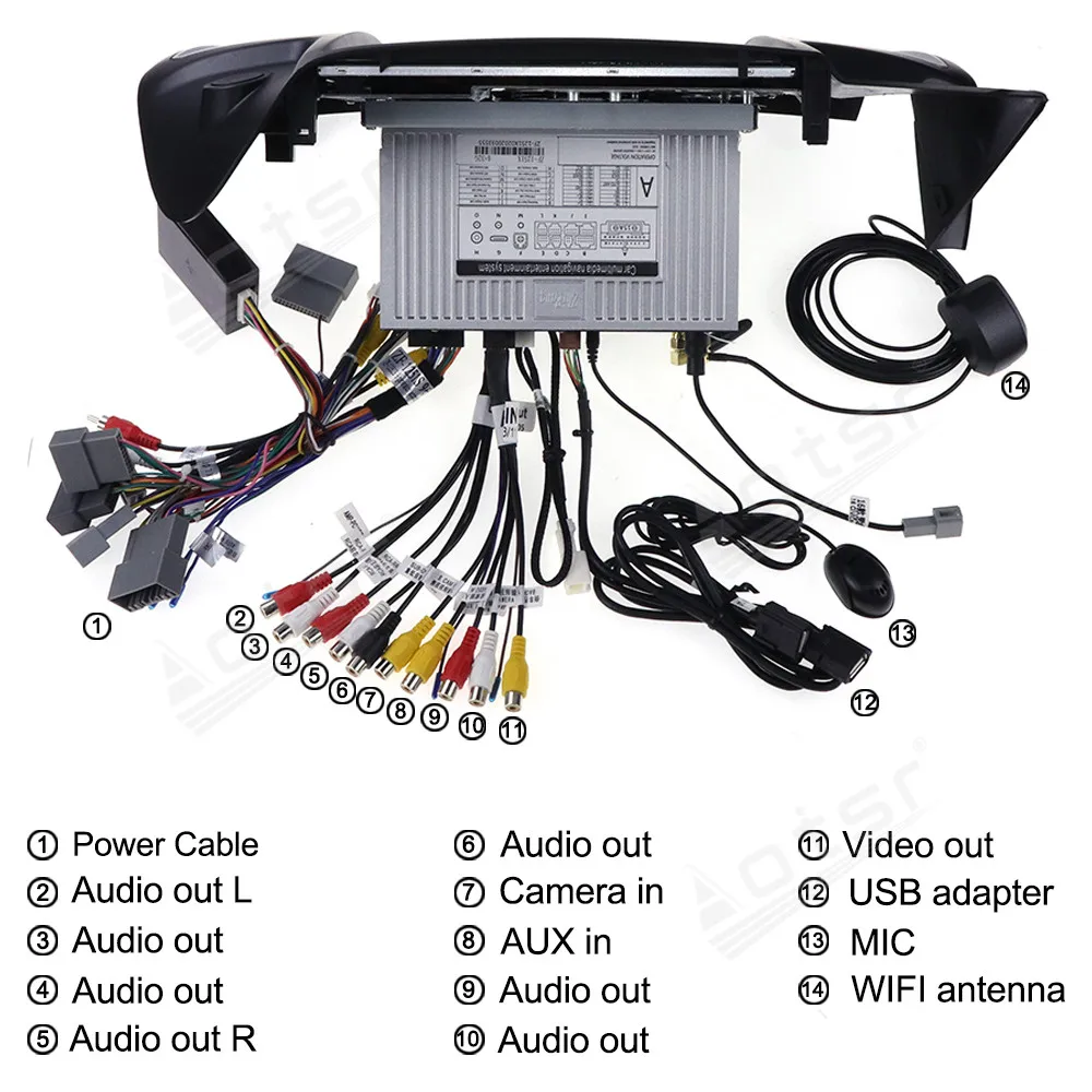 Наш продукт поставляется с GPS антенной, gps-картой для вашей страны, usb-адаптером, аудио и видео входным кабелем, кабелем питания... и т. д., все наборы для установки будут в посылка.