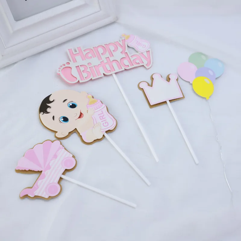 Счастливый топперы для торта на день рождения воздушные шары звезды Baby Shower флажки для торта это день рождения девочки мальчика Пол раскрыть вечерние замок торт Декор