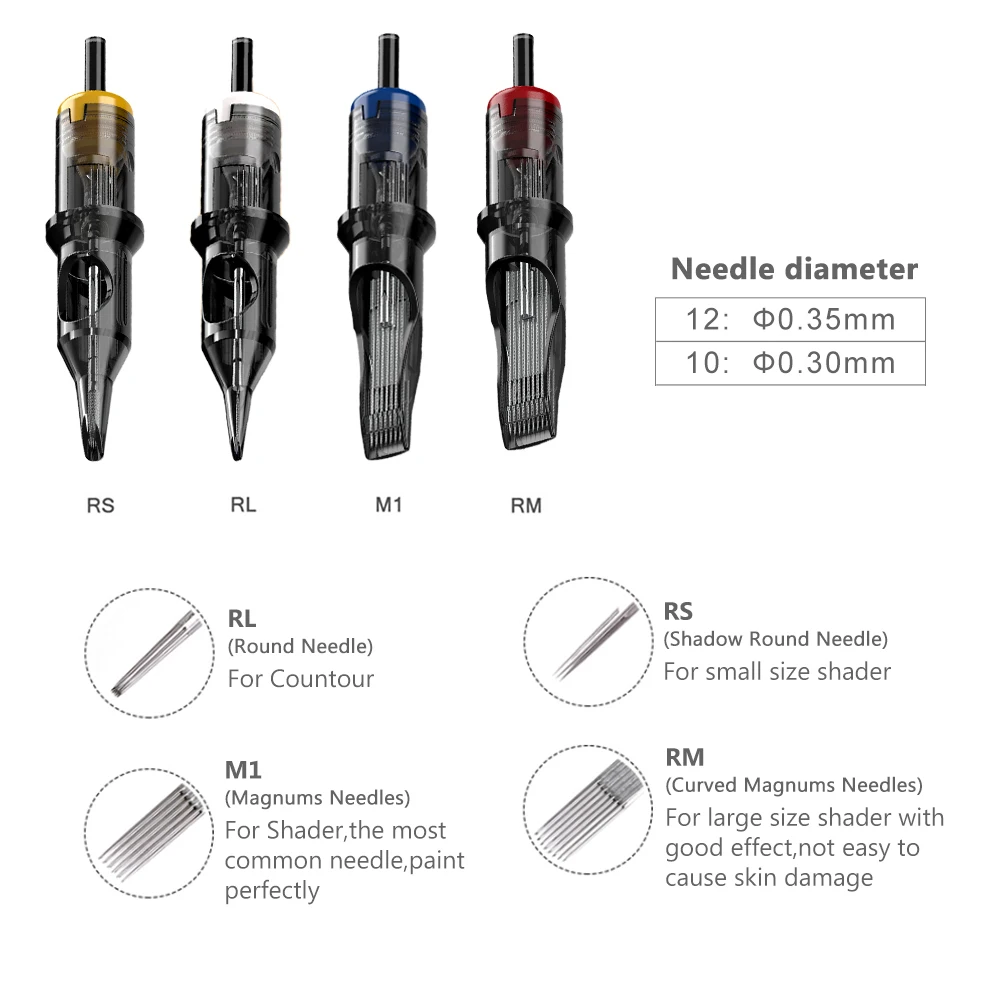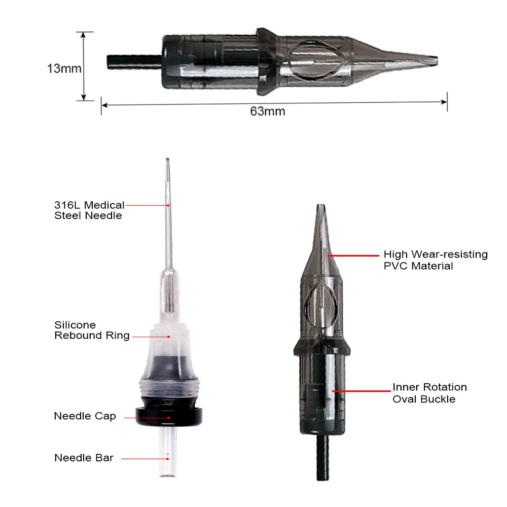 -- Совместимость со всеми шинами типов картриджей системные машины и ручки.-- 100% EO газ стерилизован и индивидуально упакован.-- Иглы изготовлены из нержавеющей стали 316 медицинского класса.-- Пластиковые наконечники медицинского класса.-- 20 игл в коробке.