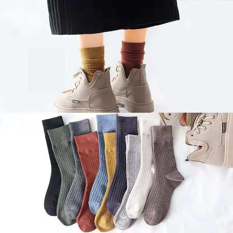 Носки женские хлопковые трикотажные, однотонные милые длинные в японском стиле, винтажная уличная одежда в стиле Харадзюку, Осень-зима