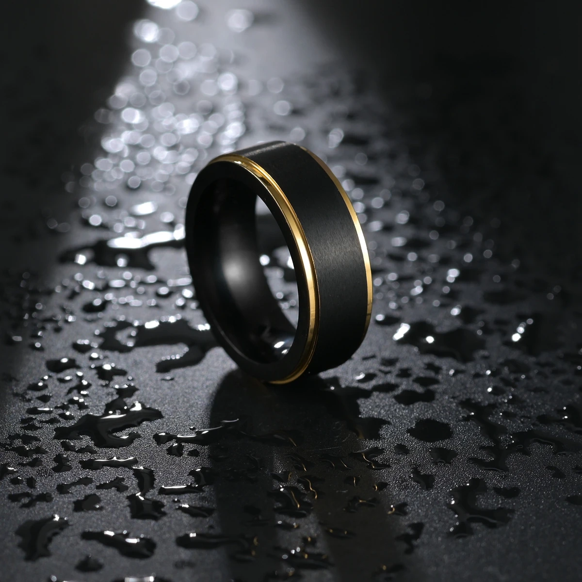 Кольцо вольфрамовое мужское кольцо черного и золотого цвета линии м...