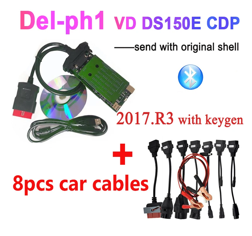Новинка 2021, vci vd ds150e cdp pro plus bluetooth 2016.R02017.R3 keygen OBD2 сканер для delphis ds150e, легковых автомобилей и грузовиков