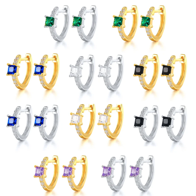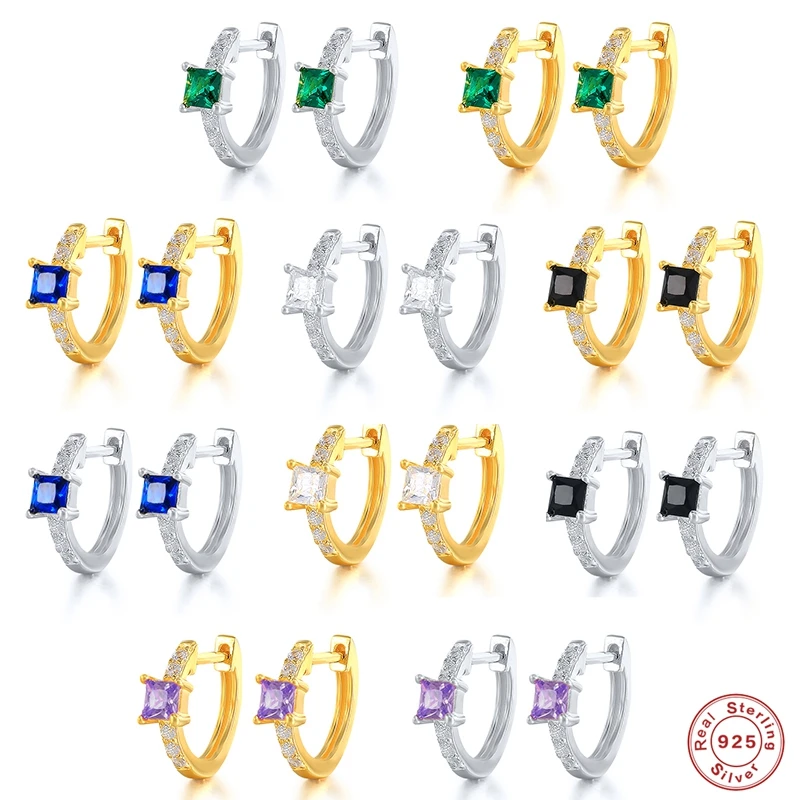 Женские серьги, Настоящее серебро 925 пробы, CZ, серьги-кольца для помолвки на день рождения, красочные квадратные серьги с цирконием