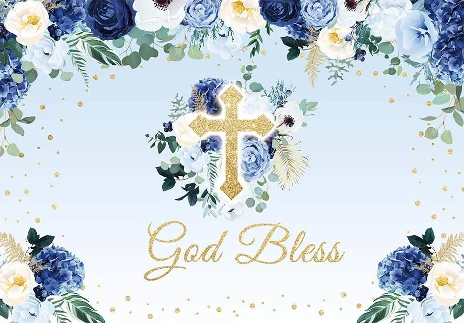 Фон для фотосъемки с изображением богов, благословления, крестины, вечеринки, Первого Святого Причастия, Фотофон с голубыми цветами для мальчиков и малышей