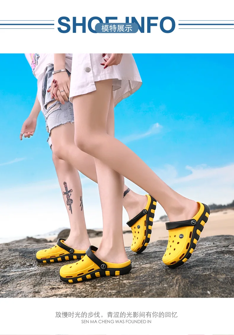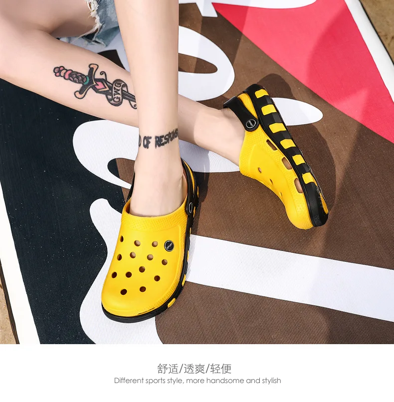Новинка лета 2021, мужские сандалии для сабо, легкие пляжные тапочки из ЭВА, Нескользящие мюли, унисекс садовые Туфли-сабо, повседневные шлепанцы