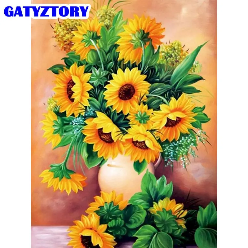 GATYZTORY 5D DIY алмазное Рисование Подсолнечник вышивка Алмазная мозаика камни в форме ромбакруглый дрель пейзаж украшения для дома подарок на Рождество